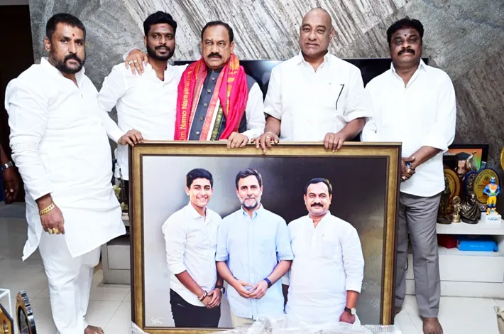పీసీసీ అధ్యక్షుడు మహేష్ కుమార్ గౌడ్కు రాహుల్ గాంధీ చిత్రపటం బహూకరణ