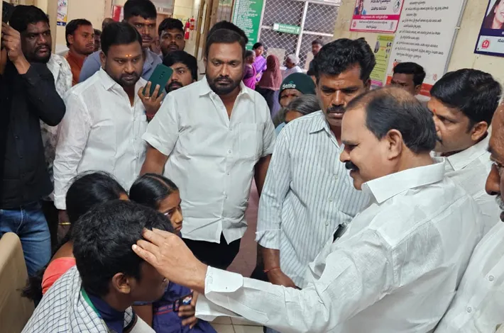 విద్యార్థుల ఆటో బోల్తా.. ఆస్పత్రిలో విద్యార్థులను పరామర్శించిన ఎమ్మెల్యే శంకర్