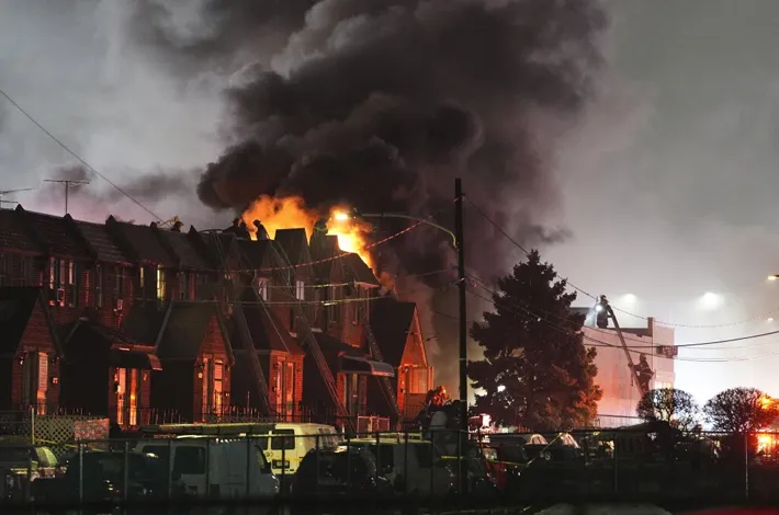 పేలుడు ధాటికి పలు ఇళ్లు దగ్ధం