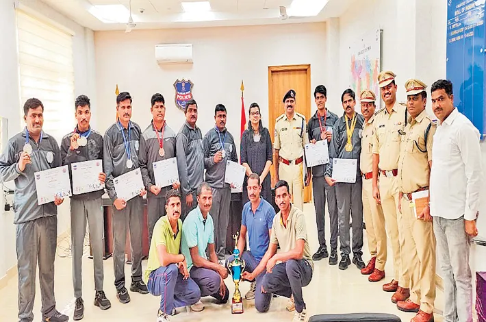 పథకాలు సాధించిన పదిమంది పోలీస్ సిబ్బందిని అభినందించారు.ఈ కార్యక్రమంలో ఎఆర్ డిఎస్పి యాకూబ్ రెడ్డి, స్పెషల్ బ్రాంచ్ ఇన్స్పెక్టర్ తిరుపయ్య, రిజర్వ్ ఇన్స్పెక్టర్ లు సంతోష్ కుమార్, నవీన్ కుమార్, కృష్ణ పతకాలు సాధించిన క్రీడాకారులు, తదితరులు పాల్గొన్నారు.