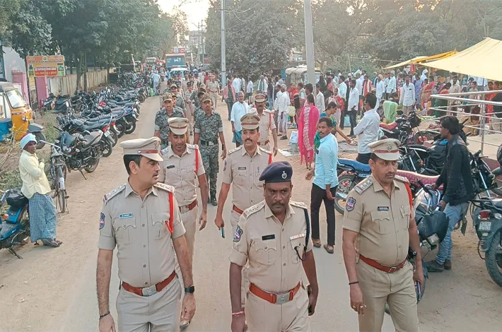 సాలుర గ్రామంలో పోలీసుల ఫ్లాగ్ మార్చ్