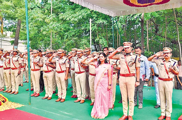 కరీంనగర్ క్రైం, అక్టోబర్ 21(విజయక్రాంతి);పోలీస్ అమరవీరుల దినోత్సవాన్నిపురస్కరించుకుని కరీంనగర్ పోలీస్ కమీషనరేట్ కేంద్రంలోని పోలీసు అమరవీరుల స్థూపం వద్ద మంగళవారంనాడు ’ఫ్లాగ్ డే’ కార్యక్రమాన్ని ఘనంగా నిర్వహించారు. ఈ కార్యక్రమానికి ముఖ్య అతిథిగా కరీంనగర్ జిల్లా కలెక్టర్ పమేలా సత్పతి హాజరయ్యారు. కరీంనగర్ పోలీసు కమీషనర్ గౌష్ ఆలం అధ్యక్షత వహించారు. కలెక్టర్ శ్రీమతి పమేలా సత్పతి మాట్లాడుతూ, పోలీసుల త్యాగం మరువలేనిదని కొనియాడారు.