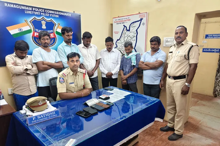 లక్షెట్టిపేట (విజయక్రాంతి): మండలంలోని బలరావు పేట గ్రామ శివారులో పేకాట స్థావరంపై బుధవారం లక్షెట్టిపేట ఎస్సై సతీష్ సిబ్బందితో కలిసి 7 గురు పేకాట రాయుళ్ళను అదుపులోకి తీసుకున్నారు. ఎస్సై సతీష్ తెలిపిన వివరాలు ప్రకారం... బలరావుపేట గ్రామ శివారులో పేకాట ఆడుతున్నారాన్న పక్క సమాచారం మేరకు పోలీస్ సిబ్బంది దాడి చేసి పేకాట ఆడుతున్న బత్తుల రమేష్, కోన తిరుపతి, బేర రాజయ్య, సంగం ఒదయ్య, గోర్క మల్లేష్, వనపర్తుల సుధాకర్, మండే సత్తన్న ను అదుపులోకి తీసుకుని వారి వద్ద నుండి 5 బైకులు, 6 సెల్ ఫోన్లు, 13 వేల రూపాయల నగదును స్వాధీనం చేసుకోవడం జరిగిందని తెలిపారు.