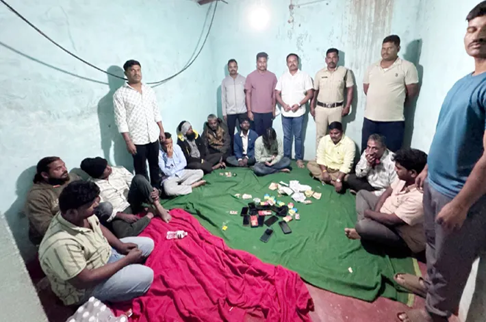 జహీరాబాద్ టౌన్: పేకాట ఆడుతున్న 11 మంది పేకాటరాయుళ్ళను పోలీసులు అరెస్టు చేశారు. నమ్మదగిన సమాచారం మేరకు చిన్న హైదరాబాద్ గ్రామ శివారులోని పేకాట స్థావరంపై దాడి చేసి 11 మందిని అరెస్ట్ చేసి వారి వద్ద నుండి రూ.40,150 నగదు, 4 మోటార్ సైకిళ్లు, 14 సెల్ఫోన్లు, 52 పేకాట ముక్కలను స్వాధీనం చేసుకున్నారు. పేకాట ఆడుతున్నట్లు అందిన సమాచారం మేరకు ఎస్ఐ కె. వినయ్ కుమార్ సిబ్బందితో కలిసి దాడి నిర్వహించారు. పారిపోవడానికి ప్రయత్నించిన వారిని పోలీసులు అదుపులోకి తీసుకున్నారు.