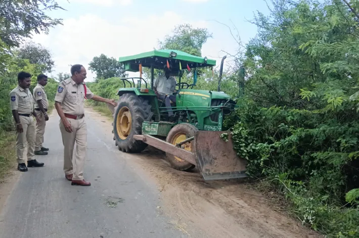 ముళ్ల పొదలను తొలగించిన పోలీసులు