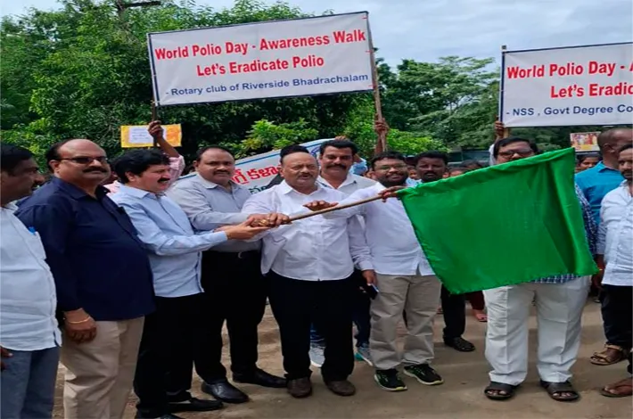 భద్రాచలం, అక్టోబర్ 24, (విజయక్రాంతి)ప్రపంచ పోలియో నిర్మూలన దినోత్సవం సందర్భంగా రోటరీ క్లబ్ ఆఫ్ రివర్ సైడ్ భద్రాచలం, ప్రభుత్వ డిగ్రీ కళాశాల ఎన్ఎస్ఎస్ విద్యార్థులు శుక్రవారం భారీ ర్యాలీ నిర్వహించారు.ఈ ర్యాలీని జెండా ఊపి ప్రారంభించిన భద్రాచలం శాసనసభ్యులు తల వెంకట్రావు సందర్భంగా ప్రభుత్వ డిగ్రీ కళాశాల ఎన్ఎస్ఎస్ విద్యార్థిని విద్యార్థినిలు, రోటరీ క్లబ్ సభ్యులను ఉద్దేశించి ప్రసంగించారు.