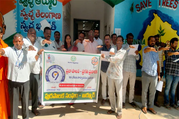 అర్మూర్,(విజయక్రాంతి): రాష్ట్ర ప్రభుత్వం చేపట్టిన ప్రజా పాలన ప్రగతి ప్రణాళిక పై మున్సిపల్ యంత్రాంగం సమాయాత్తమయ్యారు. 99 రోజుల కార్యాచరణ ప్రణాళికలో భాగంగా శుక్రవారం ఆర్మూర్ మున్సిపల్ కార్యాలయంలో మున్సిపల్ పాలకవర్గం, అధికారులు ప్రతిజ్ఞ చేశారు పట్టణంలోని ప్రతి వార్డులో నెలకొన్న సమస్యలను పరిష్కరించాలని ప్రతిజ్ఞ పూనారు.