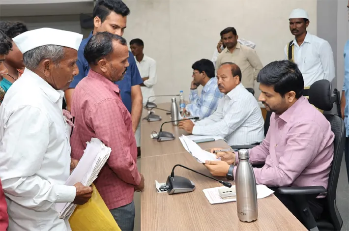 కుమ్రం భీం ఆసిఫాబాద్,(విజయక్రాంతి): ప్రజావాణి కార్యక్రమంలో అందిన దరఖాస్తులను త్వరగా పరిష్కరించాలని జిల్లా కలెక్టర్ వెంకటేష్ ధోత్రే అన్నారు. సోమవారం జిల్లా కేంద్రంలోని సమీకృత జిల్లా కలెక్టరేట్ భవన సమావేశ మందిరంలో జిల్లా అదనప కలెక్టర్ (రెవెన్యూ) డేవిడ్, ఆసిఫాబాద్ రాజస్థాన్ మండలాధికారి లోకేశ్వర్ రావు లతో కలిసి అర్జీదారుల నుండి దరఖాస్తులు స్వీకరించారు. కెరమెరి మండలం గోయగాం గ్రామానికి చెందిన ముస్లిం మైనారిటీ మహిళలు తమ గ్రామము ఏజెన్సీ పరిధిలో ఉన్నందున గిరిజనేతర గ్రామంలో ఇండ్ల స్థలాలు ఇప్పించాలని కోరుతూ దరఖాస్తు అందజేశారు.