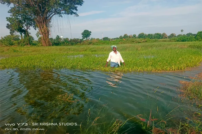 మరిపెడ, అక్టోబర్30 (విజయక్రాంతి): మహబూబాబాద్ జిల్లా,మరిపెడ మండల కేంద్రంలో మోంథా తుఫాన్ సృష్టించిన బీభత్సంతో వరి, మొక్కజొన్న, పత్తి పంటలు నేలకొరిగి నీళ్లలో నానుతూ ఉన్న పంటలకు తీవ్రమైన నష్టం వాటిల్లకుండా నివారణ చర్యలలో భాగంగా మరిపెడ మండల వ్యవసాయ శాఖ అధికారి, రైతులకు కొన్ని సూచనలు ఇచ్చారు. వాటిలో వరిపైరు నేలకొరిగితే వరి పంట గింజ గట్టి పడే దశ, కోత దశలో ఉండటం వల్ల కింద పడిపోవచ్చు.