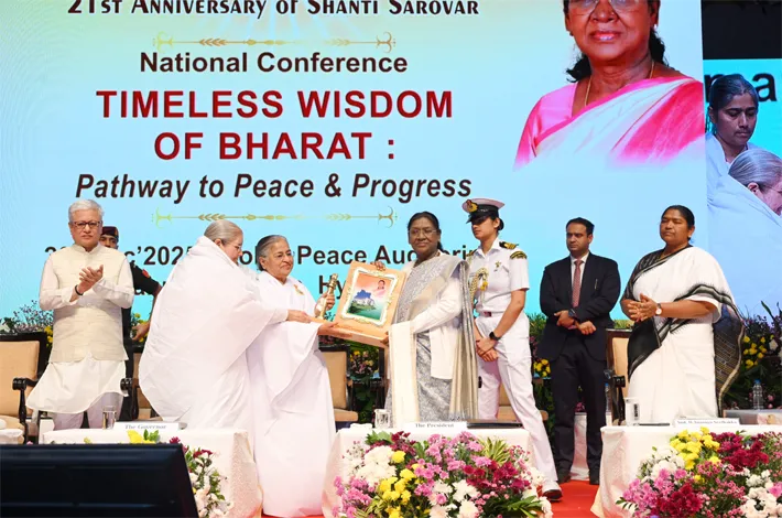 హైదరాబాద్ సిటీబ్యూరో, డిసెంబర్ 20 (విజయక్రాంతి):‘ప్రస్తుత సమాజంలో కేవ లం భౌతిక అభివృద్ధి వల్ల జీవితంలో సుఖశాంతులు లభించవు. మనిషికి ఆధ్యాత్మికత, అంతర్గత స్థిరత్వం ఎంతో అవసరం. కల్లోలం లో కూడా నిశ్చలంగా ఉండటం అనే సిద్ధాంతాన్ని అలవర్చుకోవాలి అని భారత రాష్ట్రప తి ద్రౌపది ముర్ము ఉద్ఘాటించారు.శనివారం గచ్చిబౌలిలోని బ్రహ్మకుమారీస్ సంస్థకు చెందిన శాంతి సరోవర్ 21వ వార్షికోత్సవ వేడుకలకు ఆమె ముఖ్య అతిథిగా హాజరయ్యారు.