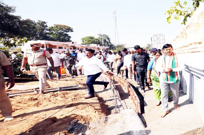 సమ్మక్క సారలమ్మ దేవాలయ గద్దెల పునరుద్ధరణ అభివృద్ధి పనులను, దేవాలయ ప్రాంగణంలోని పగిడిద్దరాజు, గోవిందరాజుల గద్దెల రాతి నిర్మా ణాలను, ఆలయ ప్రాంగణ ఫ్లోరింగ్ ప నులను, రాతి స్తంభాల స్థాపన నిర్మాణ పనులను, జంపన్న వాగు వద్ద పనులను క్షేత్ర స్థాయిలో పరిశీలించారు.