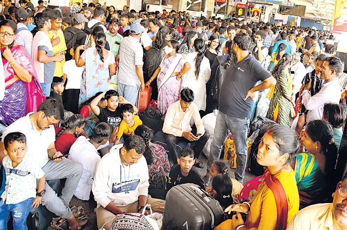 వరుసగా మూడు రోజులు సెలవులు రావడంతో బస్టాండ్లు, రైల్వేస్టేషన్లు ప్రయాణికులతో కిక్కిరిసిపోతున్నాయి. ఆర్టీసీ ప్రత్యేక బస్సులను ఏర్పాటు చేయ గా, ప్రత్యేక రైళ్లతోపాటు రైళ్లకు అదనపు కోచ్లను దక్షణిమధ్య రైల్వేశాఖ ఏర్పా టు చేసింది. మరో వైపు ప్రయాణికుల రద్దీతో ప్రయివేట్ ట్రావెల్స్ నిర్వాహకు లు రెట్టింపు ధరలతో ప్రయాణికులను దోచుకుంటున్నారు. టోల్గేట్ల వద్ద వాహనాలు కిలోమీటర్ల మేర క్యూ కడుతున్నాయి.