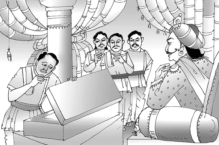 ఆసక్తి కలిగిన వారు చూడవచ్చు’ అని చాటించాడు. తెల్లవారి మైదానంలో ఆ పేటికను పెడితే ప్రజలం తా తమ అభివృద్ధిని నిరోధించే భూ తా న్ని చూడాలనే కోరికతో అక్కడికి చేరుకున్నారు. ఒక్కొక్కరుగా పేటిక మూతను తీసి చూచి ఆశ్చర్యపోయారట. నిజానికి అందు లో ఒక పెద్ద అద్దాన్ని పెట్టించాడు, రాజుగారు. ఆ అద్ధంలో అందరూ తమ ప్రతి బింబాన్నే చూసుకున్నారు. ఒకరికి ఒక రం గుపై అత్యంతమైన ఇష్టం ఉన్నది.