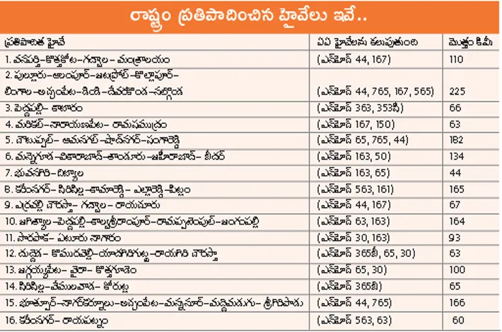 16 కొత్త హైవేలకు ప్రతిపాదనలు!
