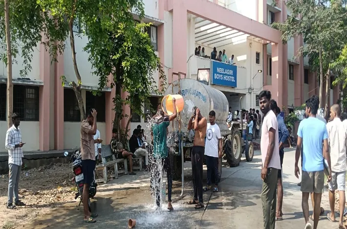 అధికారులు తాత్కాలికంగా ట్యాంకర్ల ద్వారా నీరు తెప్పించడంతో రోడ్డు మీదనే స్నానాలు చేయడం అవమానకరంగా భావించారు హాస్టల్ గదిలో నీటి కోసం ఏర్పాటుచేసిన పైప్లైన్ కనెక్షన్లు సక్రమంగా లేకపోవడంతో హాస్టల్ వద్ద ఉంచిన ట్యాంకర్ వద్దని రోడ్డుపై స్నానాలు వాపోయారు యూనివర్సిటీలో చేపట్టే భవన నిర్మాణాలకు నీటిని మల్లీస్తున్న అధికారులు హాస్టల్లో విద్యార్థులకు నీటి సమస్యను పరిష్కరించడం లేదని ఆరోపిస్తున్నారు సమస్యలు పరిష్కరిస్తామని రిజిస్టర్ అంజిరెడ్డి హామీ ఇవ్వడంతో విద్యార్థులు ఆందోళన విరమించారు.