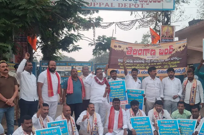బంద్ లో భాగంగా ఉప్పల్ ఆర్టీసీ డిపో ముందు నిరసన తెలిపిన డి. రాజారాం యాదవ్..