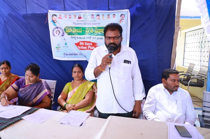 99 రోజుల స్పెషల్ ప్రోగ్రాం క్రింద పారిశుధ్య నిర్వహణ, పెండింగ్ ఫైల్స్ పరిష్కారం, వైద్యశాఖ పరిధిలో ప్రత్యేక కార్యక్రమాలు, రోడ్డు భద్రత పై అవగాహన, వ్యవసాయం , మహిళా సంక్షేమం వంటి వివిధ రంగాలపై ప్రత్యేక కార్యక్రమాలు ప్రణాళిక సిద్ధం చేయడం జరిగిందని అన్నారు. ప్రభుత్వ పాఠశాలలో విద్యార్థులు సంఖ్య పెంచే విధంగా గ్రామస్తులు చూడాలన్నారు. ప్రభుత్వం ప్రభుత్వ పాఠశాలను కార్పోరేట్ స్థాయిలో తయారుచేసి విద్యార్థులకు పుస్తకాలు, బట్టలు, షూలు, స్టేషనరీ తదితర వస్తువులు అందించడం జరుగుతుందన్నారు. అనుభవాగ్లైన ఉపాధ్యాయులతో విద్య బోధించడం జరుగుతుందన్నారు. ప్రతి ఒక్కరూ ప్రభుత్వ పాఠశాలలో తమ తమ పిల్లను చదివించేందుకు కృషి చేయాలన్నారు. వచ్చే జూన్ లో నూతనంగా అమలు కాబోతున్న పతకాల ను వివరించారు. ఈ సందర్భంగా గ్రామపంచాయతీలో ఫిర్యాదుల పెట్టెను ఏర్పాటు చేసినట్లు ఎంపీడీవో తెలిపారు. ఈ మోటార్ వెహికల్ ఇన్స్పెక్టర్ రజనీ దేవి, ఉపసర్పంచ్ మెరుపుల చందన జలంధర్, కార్యదర్శి అనిల్, వార్డు సభ్యులు గ్రామస్తులు పాల్గొన్నారు.