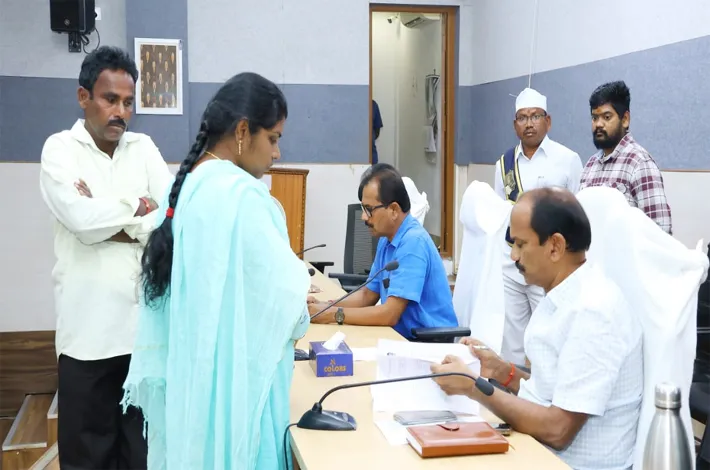 ములుగు డిసెంబర్22(విజయక్రాంతి): ప్రజావాణి కార్యక్రమంలో అందిన దరఖాస్తులను క్షేత్రస్థాయిలో పరిశీలించి సంబం ధిత అధికారులు సమన్వయంతో త్వరితగతిన పరిష్కరించే విధంగా చర్యలు తీసు కోవాలని అదనపు కలెక్టర్ రెవిన్యూ సి. హె చ్. మహేందర్ జి అన్నారు. సోమవారం కలెక్టరేట్ సమావేశ మందిరంలో అదనపు కలె క్టర్ రెవిన్యూ సి. హెచ్. మహేందర్ జి, అదనపు కలెక్టర్ స్థానిక సంస్థలు సంపత్ రావు అర్జీదారుల నుండి దరఖాస్తులు స్వీకరించారు. ఈ రోజు ప్రజావాణి కార్యక్రమంలో 35 దరఖాస్తులు రాగా అత్యధికంగా భూ సమస్యలు 08, గృహ నిర్మాణ శాఖకు 04, పెన్షన్ 06, ఇతర ఇతర శాఖలకు సంబంధించినవి 17 దరఖాస్తులు స్వీకరించగా వాటిని వెంటనే సంబంధిత అధికారులకు బదిలీ చేసి పరిష్కరించాలని ఆదేశించారు.