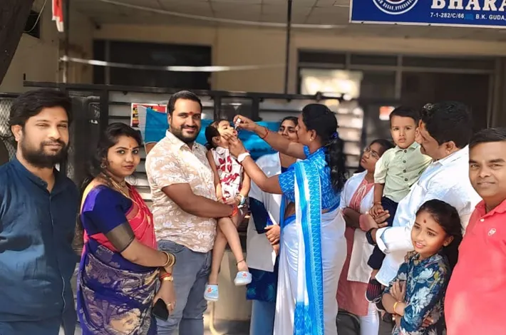 హైదరాబాద్ (విజయక్రాంతి): దేశవ్యాప్తంగా పోలియో నిర్మూలనలో భాగంగా నిర్వహిస్తున్న పల్స్ పోలియో స్పెషల్ డ్రైవ్ కార్యక్రమంలో భాగంగా తెలంగాణ రాష్ట్ర ప్రభుత్వం ఆరు జిల్లాలను ఎంపిక చేసింది. ఆ జిల్లాల్లో హైదరాబాద్ నగరం కూడా ఒకటి. ఈ నేపథ్యంలో సనత్ నగర్ డివిజన్లోని బీ.కే. గూడా భారతి నర్సింగ్ హోమ్ ఆవరణలో చిన్నారులకు పోలియో చుక్కలు వేసే కార్యక్రమం నిర్వహించారు.