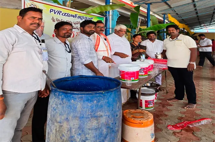 అన్నపురెడ్డిపల్లి, మార్చి 2 (విజయ క్రాంతి): భద్రాద్రి కొత్తగూడెం జిల్లా అన్నపురెడ్డిపల్లి మండల కేంద్రంలో కొలువై ఉన్న శ్రీ బాలాజీ వెంకటేశ్వర స్వామి బ్రహ్మోత్సవ వేడుకలు అంగరంగ వైభవంగా నిర్వహించడం జరుగుతుంది. ఈ కార్యక్రమంలో భాగంగా పర్స వెంకట్గారి ఆధ్వర్యం లో పివిఆర్ యూత్ సభ్యులు భక్తుల అలసటను దూరం చేసేందుకు మజ్జిగ పంపిణీ కార్యక్రమాన్ని చేపట్టారు.