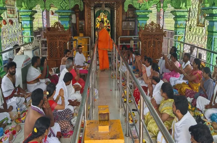 కొండపాక, (విజయక్రాంతి): కొండపాక మండలం మర్పడగ గ్రామంలోని శ్రీ విజయదుర్గా సమేత సంతాన మల్లికార్జున స్వామి క్షేత్రంలో శుక్రవారం నాడు రాహు కాల పూజ క్షేత్ర నిర్వాహకులు డాక్టర్ చెప్పెల హరినాథశర్మ ఆధ్వర్యంలో అత్యంత భక్తి శ్రద్ధలతో నిర్వహించారు. ఉదయం 6-30 గంటలకు గణపతి పూజతో కార్యక్రమం ప్రారంభం కాగా విజయదుర్గా మాతకు విశేష పంచామృత ఫలరస అభిషేకం నిర్వహించి పట్టువస్త్రాలతో అలంకరించారు. అనంతరం సంతాన మల్లికార్జున స్వామి వారి అభిషేకం నిర్వహించారు. ఉదయం పది గంటల నుండి ఒంటి గంట వరకు రాహుకాల పూజ శాస్త్రోక్తంగా జరిగింది. రాహుకేతు దోషనివారణ కోసం అష్టనాగపూజ నిర్వహించి కుజదోష నివారణకు సుబ్రహ్మణ్య స్వామి వారి అభిషేకం నిర్వహించారు. అనంతరం భక్తులకు అన్న ప్రసాద వితరణ జరిగింది. కార్యక్రమంలో క్షేత్ర నిర్వహణా కమిటీ సభ్యులు చీకోటి రాజేంద్రప్రసాద్ తిరుపతి రెడ్డి మర్యాల రవీందర్ తదితరులు పాల్గొన్నారు.