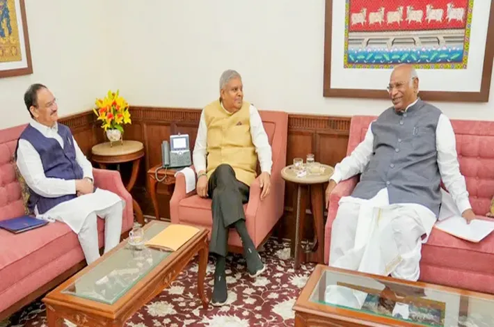 న్యూఢిల్లీ,(విజయక్రాంతి): రాజ్యసభ చైర్మన్ జగదీప్ ధంఖర్(Rajya Sabha Chairman Jagdeep Dhankhar) సోమవారం సభా నాయకుడు జెపి నడ్డా, ప్రతిపక్ష నాయకుడు మల్లికార్జున్ ఖర్గేలతో సమావేశమై న్యాయపరమైన జవాబుదారీతనం, ఎన్జేఎసీ చట్టంపై(National Judicial Appointments Commission Act) నిర్మాణాత్మక చర్చను నిర్వహించారు. ఉదయం 11.30 గంటలకు తన ఛాంబర్లో సమావేశం కావాలని నడ్డా, ఖర్గే ఇద్దరికీ చైర్మన్ లేఖ రాసినట్లు సమాచారం. హైకోర్టు న్యాయమూర్తి నివాసం నుండి నగదు రికవరీపై కాంగ్రెస్ నాయకుడు జైరాం రమేష్(Congress leader Jairam Ramesh) లేవనెత్తిన అంశాలకు ప్రతిస్పందనగా మార్చి 21న సభ ఛైర్మన్ చేసిన పరిశీలనలను ఈ సమావేశం సూచిస్తుంది. 2014లో జాతీయ న్యాయ నియామకాల కమిషన్ (NJAC) చట్టం ఆమోదించబడిన తర్వాత, చైర్మన్ ధంఖర్ మార్చి 21న న్యాయ నియామకాల కోసం యంత్రాంగం గురించి ప్రస్తావించారు. ఆ చట్టాన్ని సుప్రీంకోర్టు తరువాత కొట్టివేసింది.