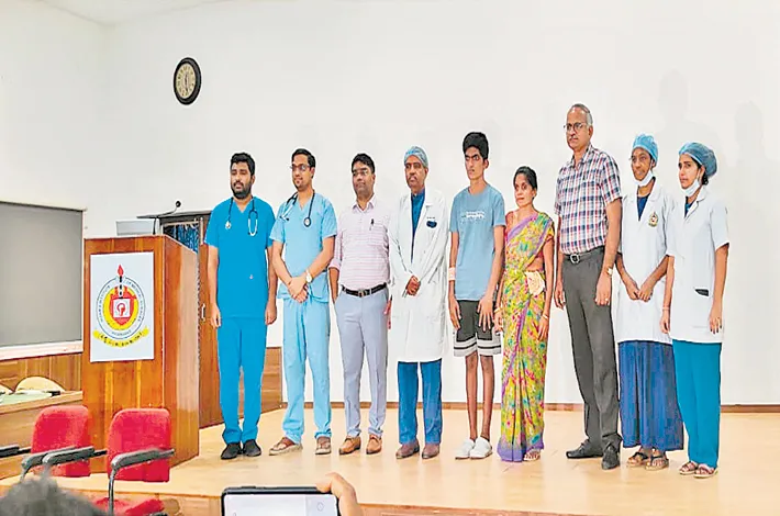 హైదరాబాద్ సిటీబ్యూరో, నవంబర్ 2 (విజయక్రాంతి): చిన్నతనం నుంచే టెట్రాలజీ ఆఫ్ ఫాలో (టీవోఎఫ్) అనే గుండె జబ్బుతో బాధపడుతున్న ఓ యువకుడికి పంజాగుట్టలోని నిమ్స్లో అరుదైన శస్త్రచికిత్సను విజయవంతంగా నిర్వహించినట్లు ఆసుపత్రి కార్డియాలజీ డాక్టర్ సాయిసతీశ్ తెలిపారు. శనివారం నిమ్స్లో ఏర్పాటు చేసిన మీడియా సమావేశంలో ఆయన మాట్లాడుతూ.. మహబూబాబాద్ జిల్లా కురవి మండలం నారాయణపురానికి చెంది న బానోత్ అశోక్ అనే యువకుడికి చిన్నతనంలోనే బైపాస్ సర్జరీ అయిందని, కొన్నేళ్లు గా అతని గుండెకు కుడివైపు ఉండే పల్మినరీ కవాటం దెబ్బతిన్నట్లు తెలిపారు.