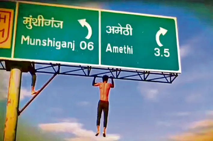 రీల్స్ పిచ్చి.. సైన్బోర్డుపై పుల్అప్స్