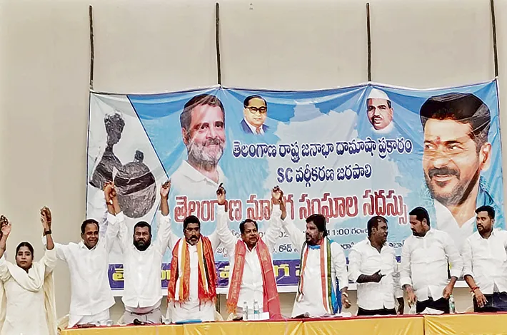 కాంగ్రెస్ పార్టీతోనే మాదిగలకు న్యాయం జరుగుతుందని, సీఎం రేవంత్రెడ్డి ముందుకువచ్చారని చంద్రశేఖర్ అన్నారు. అంబేడ్కర్ కల్పించిన రిజర్వేషన్లను జనాభా నిష్పత్తి మేరకు అందితేనే ఎస్సీల్లోని అన్ని వర్గాలకు న్యాయం జరుగుతుందని తెలిపారు. ఈ కార్యక్రమంలో మాజీ ఎమ్మెల్యే ఆరెపల్లి మోహన్, ఎస్సీ కార్పొరేషన్ మాజీ చైర్మన్ పిడమర్తి రవి, పీసీసీ ప్రధాన కార్యదర్శి చారుకొండ వెంకటేశ్, గజ్జల కాంతం, మేరి మాదిగ తదితరులు పాల్గొన్నారు.