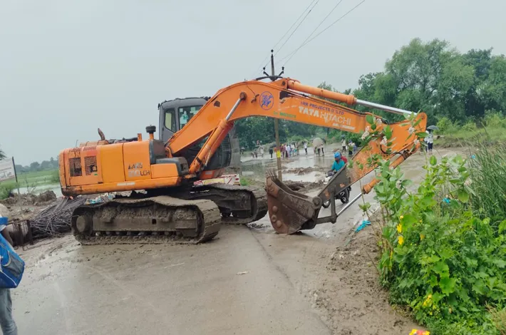 ఖమ్మం, (విజయక్రాంతి): ఖమ్మం - బోనకల్లు ప్రధాన రహదారిలోని నాగులవంచగ్రామ శివారులో ఉన్న వాగు పై వంతెన నిర్మాణ పనులు జరుగుతున్నాయి. రాష్ట్రవ్యాప్తంగా కురుస్తున్న భారీ వర్షాల కారణంగా నాగులవంచ గ్రామ శివారులో వాగు ఉదృతంగా ప్రహిస్తున్నందున బోనకల్ ఖమ్మం ప్రధాన రహదారి ట్రాఫిక్ దారి మళ్లించినట్లుగా చింతకాని ఎస్ఐ షేక్ నాగుల్ మీరా ఒక ప్రకటనలో తెలియజేశారు. వాగు దాటే సాహసం ఎవరు చేయవద్దని ఆయన తెలియజేశారు.