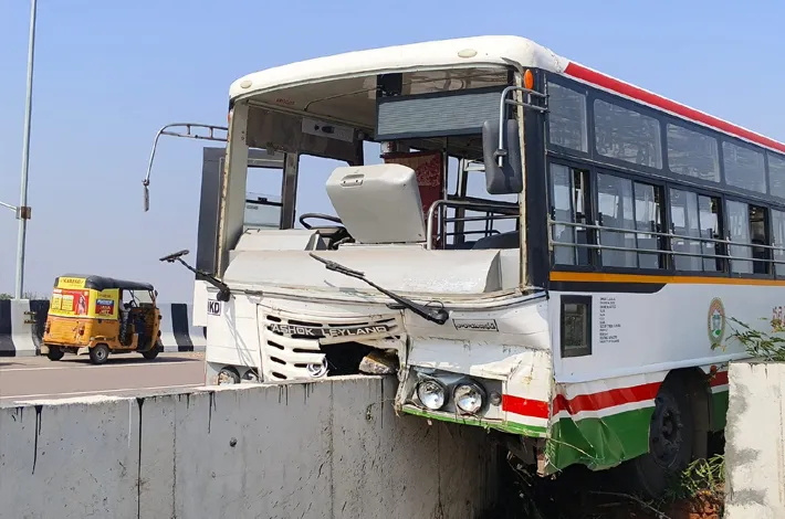 జాతీయ రహదారిపై డివైడర్ను ఢీకొట్టిన ఆర్టీసీ బస్సు