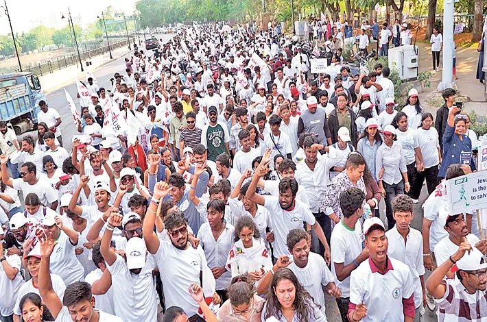 తెలుగు రాష్ట్రాలతో పాటు దేశంలోని 800 కు పైగా కేంద్రాల్లో ఉదయం 6 గంటలకే ఈ ర్యాలీ ప్రారంభమైందని నిర్వాహ కులు తెలిపారు. గ్రేటర్ హైదరాబాద్ వ్యా ప్తంగా 40 ప్రాంతాల్లో సుమారు 200 కిలోమీటర్ల మేర సాగిన ఈ కార్యక్రమంలో కార్డినల్ పూల ఆంటోనీ, బిషప్ కె. రూబెన్ మార్క్, బిషప్ ఎ.సిమియోన్, సినీ నటి జయసుధ, సీనియర్ ప్రతి నిధులు జెరుసాలెం మత్త య్య, జాన్సన్తో పాటు పలువు రు ప్రజాప్రతినిధులు పాల్గొన్నారు.
