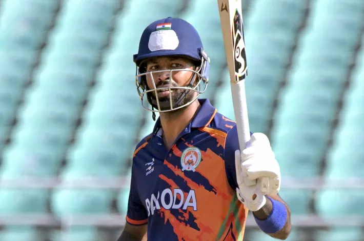 ఓవరాల్గా ఈ మ్యాచ్లో 92 బంతులు ఆడిన పాండ్యా 8 ఫోర్లు, 11 సిక్సర్లతో 133 పరుగులు చేశాడు. అతని ఇన్నింగ్స్లో 98 పరుగులు బౌండరీలు, సిక్సర్ల ద్వారానే వచ్చాయి. పాండ్యా ఒక్కటే రాణించడంతో బరోడా 50 ఓవర్లలో 9 వికెట్లకు 292 పరుగులు చేసింది. ఛేజింగ్లో విదర్భ దూకుడుగా ఆడి లక్ష్యాన్ని అం దుకుంది.