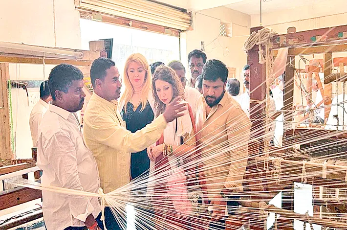 గజ్వేల్, నంబర్ 26 : గజ్వేల్ మున్సిపాలిటీ పరిధిలోనీ గజ్వేల్ చేనేత సహకార సంఘంను బుధవారం రష్యన్ ప్రొఫెసర్లు ఆండ్రీ,లుపా,అలీనా సందర్శించారు. చేనేత సహకార సంఘంలో చేనేత మగ్గాలను పరిశీలించి పనితీరును, నేతల ఉపాధిని అడిగి తెలుసుకున్నారు. ఈ సందర్భంగా పద్మశాలి సంఘం అధ్యక్షులు బోల్లిబత్తుల దేవదాస్ మాట్లాడుతూ ప్రజారోగ్యానికి చేనేత వస్త్రాలు ఎంతో దోహదపడతాయన్నారు.