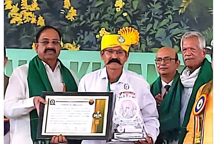 చిట్యాల (విజయక్రాంతి): చిట్యాల మండలంలోని తాళ్ల వెల్లంల గ్రామానికి చెందిన పజ్జురి అజయ్ కుమార్ రెడ్డి సమీకృత వ్యవసాయ విధానాలను అవలంబిస్తూ అధిక దిగుబడి సాధిస్తుండడంతో నల్గొండ జిల్లా నుంచి ఉత్తమ రైతుగా ఎంపికై బుధవారం హైదరాబాద్ లో పిజిపి ఆర్ సొసైటీ ఆధ్వర్యంలో నిర్వహించిన రైతు మేళ కార్యక్రమంలో ఆయనకు రైతు రత్న అవార్డును రాష్ట్ర వ్యవసాయ శాఖ మంత్రి తుమ్మల నాగేశ్వరరావు అందజేశారు. ఈ సందర్భంగా మంత్రి ఆయనను ప్రత్యేకంగా అభినందించి నూతన విధానాలతో అధిక దిగుబడిలను సాధిస్తున్న ఆయనను సన్మానించారు. రాష్ట్రంలోని ఇతర రైతులు అజయ్ కుమార్ రెడ్డిని ఆదర్శంగా తీసుకొని సమీకృత వ్యవసాయ విధానాలను అవలంబించి అధిక దిగుబడులు సాధించాలని ఆయన సూచించారు.