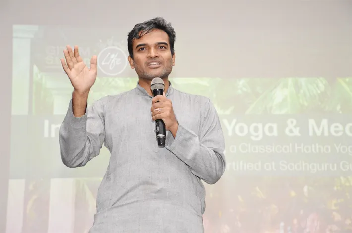 యోగా అనేది మనస్సు, శరీరం, శ్వాస ఏకం కావడానికి, అనుభవపూర్వంగా రావడానికి ఒక మార్గంగా శ్రీకాంత్ అభివర్ణించారు. యోగాలో సమతుల్యత మొదటి అడుగన్నారు. శ్వాస, మనస్సు మధ్య లోతైన సంబంధాన్ని ఎలుగెత్తి చాటారు. ముక్కు ద్వారా శ్వాసించడం ద్వారా శరీర శక్తి మార్గాలను శుద్ధిచేసి, ప్రశాంతపరిచే నాడీ శుద్ధి ప్రాణాయామాన్ని సదస్యులతో చేయించారు. సద్గురు రికార్డు చేసిన సూచనలను అనుసరించి ఏడు నిమిషాల పాటు ధ్యానాన్ని సాధన చేయించారు.