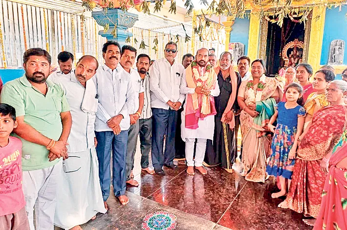 అనంతరం అయ్యప్ప స్వామి దేవాలయంలో... శ్రీ అభయ ఆంజనేయ స్వామి దే వాలయంలో ప్రత్యేక పూజలు చేశారు... సాయిరీ మహేందర్ సంగీతం శ్రీనివాస్ దం పతుల ను ఘనంగా సన్మానించారు... ఈ కార్యక్రమంలో స్పోరట్స్ క్లబ్ అధ్యక్షులు ము స్త్యాల రవీందర్, ఆలయ భక్త బృందం పాల్గొన్నారు.