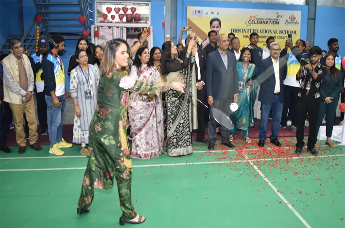 శుక్రవారం జిహెచ్ఎంసి గుండ్లపోచంపల్లి సర్కిల్ పరిధిలో ని డిఆర్ఎస్ఐఎస్ క్యాంపస్ లో జరిగిన డిఆర్ఎస్ఐఎస్ సెంటర్ నేషనల్ స్కూల్ 23వ వార్షికోత్సవ క్రీడా పోటీల ముగింపు ఉత్సవాలలో బ్యాడ్మింటన్ కీడాకారిని సైనా నెహ్వాల్ ముఖ్య అతిథిగా పాల్గొన్నట్లు చెప్పారు.పాఠశాల క్యాంపస్ ఆవరణలో కొత్తగా ఏర్పాటు చేసిన బ్యాడ్మింటన్ కోర్ట్ ను ఆమె ప్రారంభించి విద్యార్థులతో బ్యాడ్మింటన్ ఆడినట్లు పాఠశాల యాజమాన్యం చెప్పారు.
