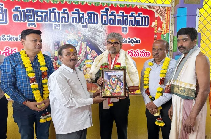 కొమురవెల్లి, డిసెంబర్ 5: ప్రముఖ పుణ్యక్షేత్రమైన కొమరవెల్లి మల్లికార్జున స్వా మిని రైల్వే జనరల్ మేనేజర్ సంజయ్ కుమార్ శ్రీవాత్సవ్ దర్శించుకున్నారు. ఆలయంలో స్వామివారికి ప్రత్యేక పూజలు చేశా రు. అనంతరం ఆలయ అర్చకులు వేద ఆశీర్వచనాలు ఇచ్చారు. రైల్వే జనరల్ మేనేజర్ సంజయ్ కుమార్ దేవాలయ విశిష్టతను, ఈవో వెంకటేష్ అడిగి తెలుసుకున్నారు. ఈ సందర్భంగా ఈవో స్వామివారి చిత్రపటం తో పాటు ప్రసాదాన్ని అందజేశారు. ఈ కా ర్యక్రమంలో ఏ ఈ ఓ బుద్ధ శ్రీనివాస్, ఆల య ప్రధాన అర్చకులు మహాదేవుని మల్లికార్జున్ తదితరులు పాల్గొన్నారు.