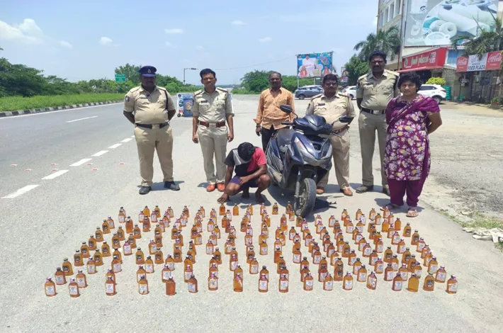 కళ్లు చెదిరిపోయేలా 200 క్వార్టర్ సీసాలను బండంతా అమర్చడంతో అవాక్కయ్యారు. అతడ్ని అదుపులోకి తీసుకున్నారు. నందిగామ మండలంలోని అనాసాగరంలో బెల్ట్షాప్ నిర్వాహకుడు పెద్దమళ్ల నర్సింహారావుకు సరఫరా చేస్తున్నట్లు తెలసుకున్నారు. మద్యం బాటిళ్లు, బైక్తోపాటు రాజును అదుపులోకి తీసుకున్నారు. అలాగే నర్సింహరావును సైతం అదుపులోకి తీసుకున్నారు.