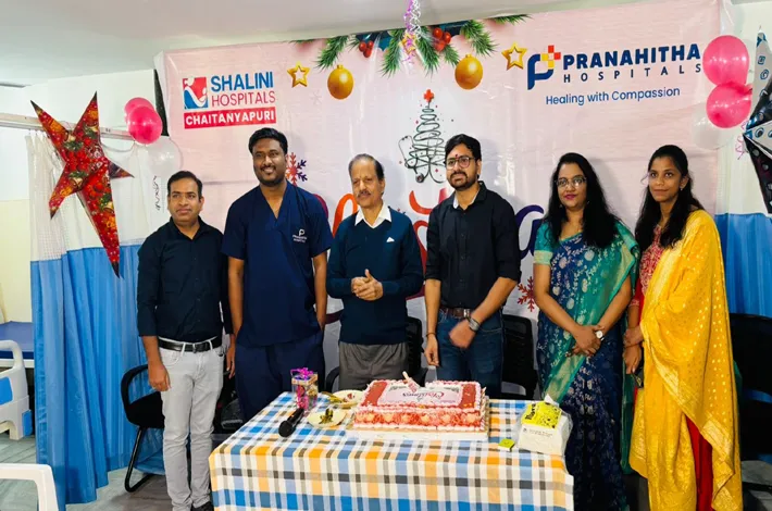 హైదరాబాద్, డిసెంబర్ 24: చైతన్యపురిలోని ప్రాణహిత హాస్పిటల్ ఆవరణలో సెమీ క్రిస్మస్ వేడుకలు అత్యంత వైభవంగా జరిగాయి. పండుగ వాతావరణం ఉట్టిపడేలా ఆసుపత్రి ప్రాంగణాన్ని రంగురంగుల విద్యుత్ దీపాలు, క్రిస్మస్ ట్రీలతో సుందరంగా అలంకరించారు.హాస్పిటల్ మేనేజింగ్ డైరెక్టర్ డాక్టర్ రాహుల్ రెడ్డి, ప్రముఖ వైద్యు లు అశోక్ కుమార్,అనిల్ కుమార్ ముఖ్య అతిథులుగా పాల్గొని కేక్ కట్ చేసి వేడుకల ను ప్రారంభించారు.