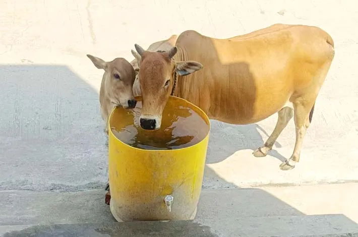 మూగజీవాల దాహం తీర్చేందుకు నీటి తొట్టి ఏర్పాటు