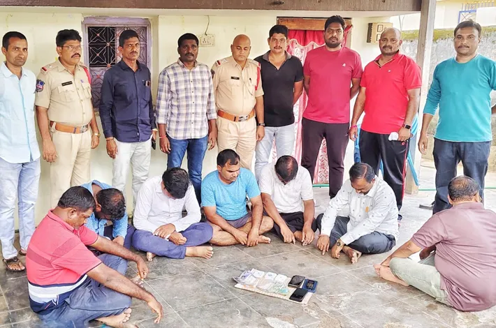 బెల్లంపల్లి (విజయ క్రాంతి): బెల్లంపల్లి పట్టణంలోని అశోక్ నగర్ లో గల ఒక ఇంట్లో పేకాట ఆడుతున్న ఏడుగురు వ్యక్తులను శనివారం సాయంత్రం టాస్క్ ఫోర్స్ పోలీసులు పట్టుకున్నారు. వీరి వద్ద నుండి రూ 19,500 నగదు తో పాటు, 6 మొబైల్ ఫోన్లు స్వాధీనం చేసుకున్నారు. పట్టుబడ్ల వారిలో తడక రవి (అశోక్ నగర్), ఎండి యాకుబ్ (హనుమాన్ బస్తి), పిల్లి రాజు (బజార్ ఏరియా), పిట్టల సంపత్ (హనుమాన్ బస్తి), నార్ల శ్రీనివాస్ (హనుమాన్ బస్తి), వెంకటస్వామి (ర డగం బాల బస్తీ), మంద కృష్ణ (డబ్బు సేట్ లైన్) లు ఉన్నారు. వీరిని బెల్లంపల్లి వన్ టౌన్ పోలీస్ స్టేషన్ లో అప్పగించారు.