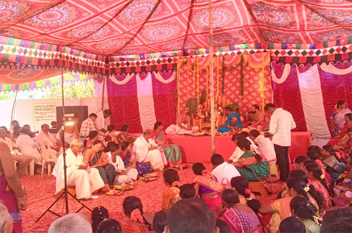 కోదాడ, ఫిబ్రవరి 13: కోదాడ మండల పరిధిలోని రామలక్ష్మీపురం గ్రామంలో శ్రీ సీతారామచంద్రస్వామి కళ్యాణ మహోత్సవాన్ని దేవాలయ చైర్మన్ కొప్పుల సుబ్బారెడ్డి పద్మ, వైస్ చైర్మన్ అన్నెం నరసింహారెడ్డి స్రవంతి ఆధ్వర్యంలో శుక్రవారం అంగరంగ వైభవంగా నిర్వహించారు. ఈ సందర్భంగా సీతారామచంద్రస్వామి కళ్యాణాన్ని తిలకించేందుకు గ్రామంతో పాటు పరిసర ప్రాంతాల నుంచి భక్తులు పెద్ద ఎత్తున తరలివచ్చి కళ్యాణాన్ని తిలకించారు.