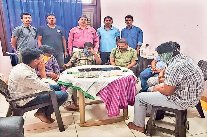 నిజామా బాద్ ఇన్చార్జి సీపీ సింధు శర్మ ఆదేశాలతో ఇంచార్జ్ స్టార్ స్పోరట్స్ ఏసిపి అంజయ్య సిసిఎస్ ఏసిపి ఆధ్వ ర్యంలో దాడులు నిర్వహించారు సమాచారం మేరకు నిర్వహించిన ఈ దాడుల్లో తోట సత్యనారాయణ అలియా సత్యంతోపాటు ఏడుగురు పేకాట ఆడేవారిని పట్టుకొని వారి నుంచి సెల్ ఫోన్లు 30,500 స్వాధీనం చేసుకుందామని పోలీసులు తెలిపారు. ఈ పేకాటలో పట్టుబడిన వారిలో గతంలో కూడా నగరంలో పలుటానాల్లో పేకాట కేసులు ఉన్నట్టు పోలీసులు తెలిపారు.