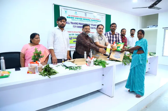 ఈ సందర్భంగా ఆయన మాట్లాడుతూ దీర్ఘకాలంగా రసాయన ఎరువుల అధిక వినియోగం వల్ల నేలలో సేంద్రియ కర్బన్ తగ్గి జీవశక్తి దెబ్బతింటోందన్నారు. సేంద్రియ వ్యవసాయం ద్వారా నేల ఆరోగ్యం మెరుగుపడటంతో పాటు పర్యావరణ పరిరక్షణకు దోహదపడుతుందని తెలిపారు. కార్యక్రమంలో ఎంపిక చేసిన రైతులకు ట్రైనింగ్ మాన్యువల్ కిట్, జీవన ఎరువులు, పప్పు, పిండి, బెల్లం, వేస్ట్ డీకంపోజర్, తదితర సేంద్రియ ఇన్ పుట్స్ పంపిణీ చేశారు.