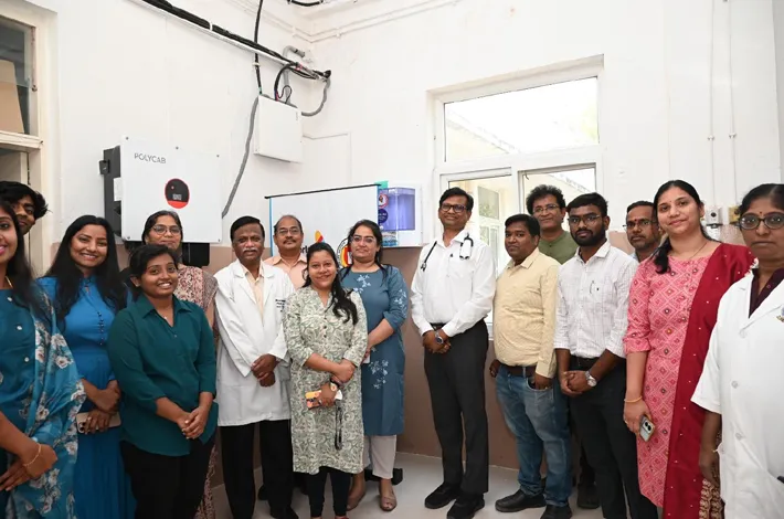 హైదరాబాద్ సిటీబ్యూరో (విజయక్రాంతి): నగరానికి చెందిన అకార్డియన్ సొల్యూషన్స్ మేనేజింగ్ డైరెక్టర్ అకృతి నిమ్స్ ఆసుపత్రికి నిర్మాణ్ ఎన్జీఓ ద్వారా రూ.20 లక్షల విలువ చేసే సోలార్ ప్యానల్స్ ను విరాళంగా అందచేశారు. అకార్డ్, నిర్మాన్ సంయుక్తంగా నిమ్స్లోని డయాలసిస్ కేంద్రానికి సౌర విద్యుత్తును అందించే ‘ప్రాజెక్ట్ గ్రీన్ డయాలసిస్ ఇనిషియేటివ్‘ అనే సోలార్ ప్యానెల్లను ఏర్పాటు చేసారు. ఇది 50 కిలోవాట్ల సామర్థ్యం గల సౌర వ్యవస్థ. రోజుకు 200 యూనిట్లను ఉత్పత్తి చేస్తుంది. దీంతో నెలకు రూ.65000 ఆదా అవుతుంది. ఈ కార్యక్రమంలో నిమ్స్ డైరెక్టర్ నగరి భీరప్ప పాల్గొని మాట్లాడుతూ... ఈ సోలార్ పవర్ వలన ఎంతో విద్యుత్ ఆదా కావడమే కాకుండా డయాలసిస్ రోగులకు ఎలాంటి అంతరాయం లేకుండా సేవలందించవచ్చన్నారు. దాతలను ప్రతేకంగా అభినందించారు. నెఫ్రాలజీ ప్రొఫెసర్లు డా. భూషణ్ రాజు, డా. గంగాధర్, డా. స్వర్ణలత, అసిస్టెంట్ ప్రొఫెసర్స్ డా. చరణ్, డా. రాకేష్, ఆర్ మ్ ఓ హేమంత్ పాల్గొన్నారు.