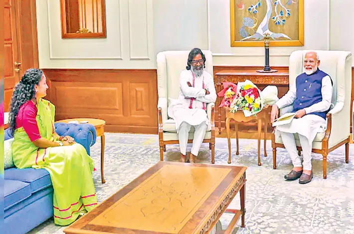 న్యూఢిల్లీ, నవంబర్ 27: జార్ఖండ్ తాత్కాలిక ముఖ్యమంత్రి హేమంత్ సోరెన్ సతీసమేతంగా ఢిల్లీలో ప్రధాని నరేంద్రమోదీని మంగళవారం మర్యాదపూర్వకంగా కలిసి తన ప్రమాణ స్వీకారో త్సవానికి అహ్వానించారు. నవంబర్ 28న రాంచీలోని మోర్హబడి మైదానం కేంద్రం గా జరిగే కార్యక్రమానికి రావాల్సిందిగా సోరెన్ దంపతులు ప్రధానిని కోరారు.