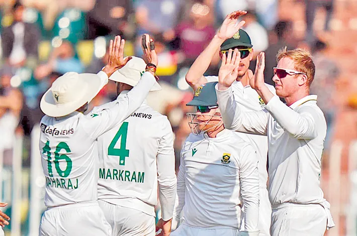 రావల్పిండి, అక్టోబర్ 23: సొంతగడ్డపై పాకిస్థాన్కు ఘోరపరాభవం ఎదురైంది. తొలి టెస్టులో గెలిచి సిరీస్పై కన్నేసిన పాక్ జట్టును దక్షిణాఫ్రికా దెబ్బకు దెబ్బ కొట్టింది. రావల్పిండి వేదికగా జరిగిన రెండో టెస్టులో పాక్ను చిత్తుగా ఓడించింది. తొలి ఇన్నింగ్స్లో టెయిలెండర్లు కూడా అదరగొట్టడం తో సౌతాఫ్రికా 404 పరుగుల భారీస్కోరుకు ఆలౌటైంది.