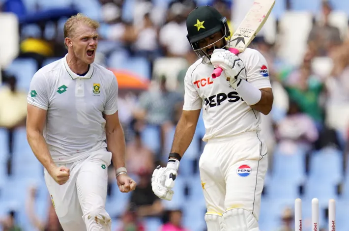 సెంచూరియన్: సొంతగడ్డపై పాకిస్థాన్తో జరుగుతున్న తొలి టెస్టులో సౌతాఫ్రికా పట్టు బిగించింది. తొలి రోజు ఆట ముగిసే సమయానికి సౌతాఫ్రికా 22 ఓవర్లలో 3 వికెట్ల నష్టానికి 82 పరుగులు చేసింది. మార్కరమ్ (47), బవుమా(4) క్రీజులో ఉన్నారు. పాక్ బౌలర్లలో షహజాద్(2), మహ్మద్ అబ్బాస్ ఒక వికెట్ పడగొట్టారు. అంతకముందు పాకిస్థాన్ తొలి ఇన్నింగ్స్లో (211) పరుగులకు ఆలౌటైంది. కమ్రాన్ గులామ్ (54) అర్థసెంచరీతో రాణించగా.. అమెర్ జమల్ (28), రిజ్వాన్ (27) పర్వాలేదనిపించారు. సఫారీ బౌలర్లలో డేన్ పాటర్సన్ 5 వికెట్లు పడగొట్టగా.. కొర్బిన్ బోస్క్ 4 వికెట్లు పడగొట్టాడు.